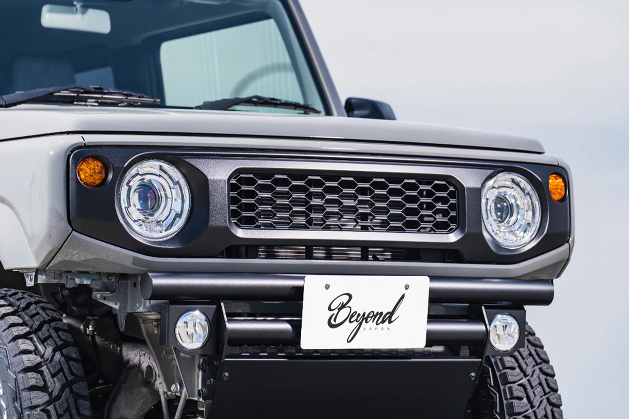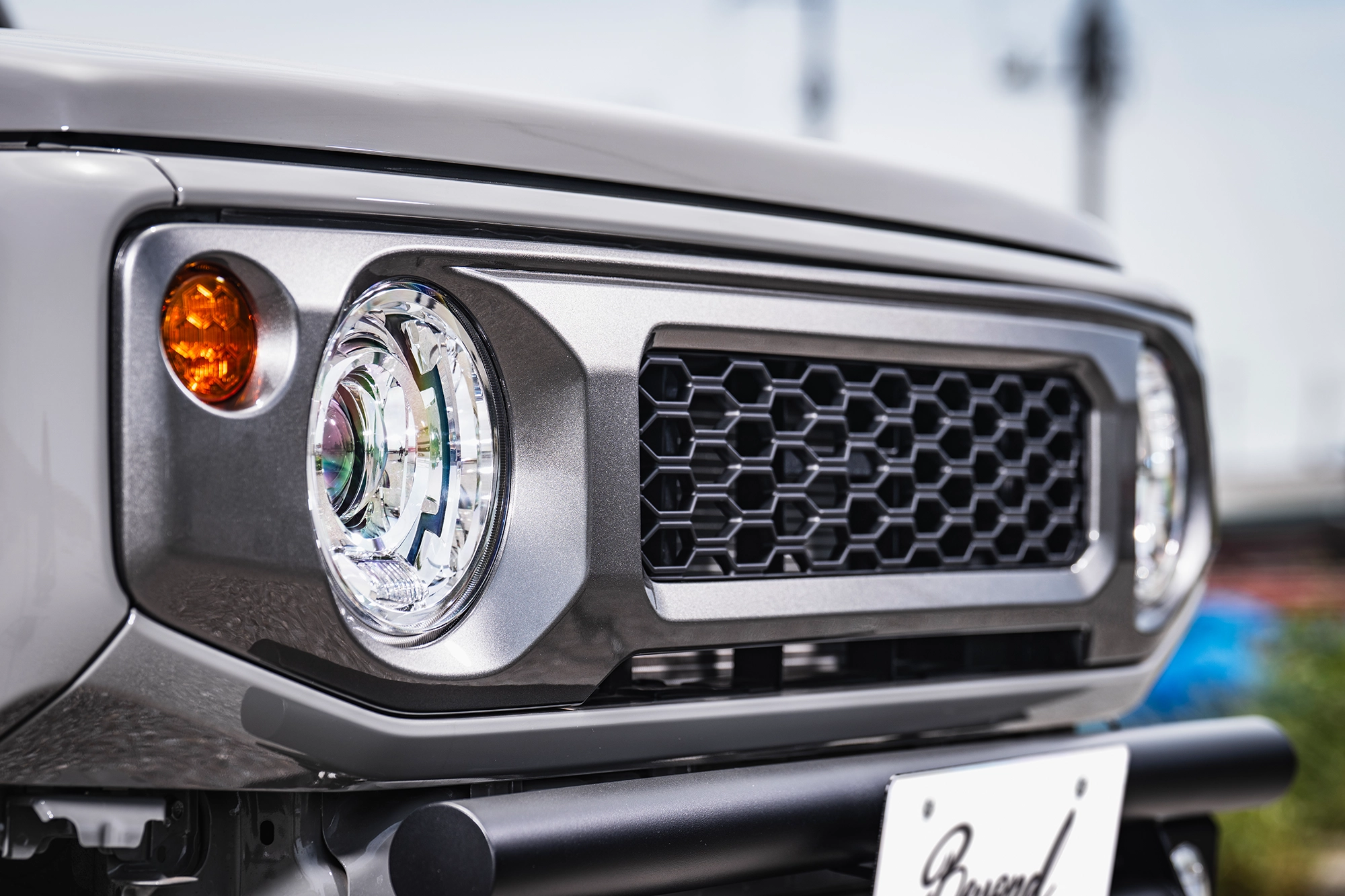 多くのジムニー乗りに選ばれている純正オプショングリルを連想させる、エッジの効いたハニカムメッシュデザインが特徴。