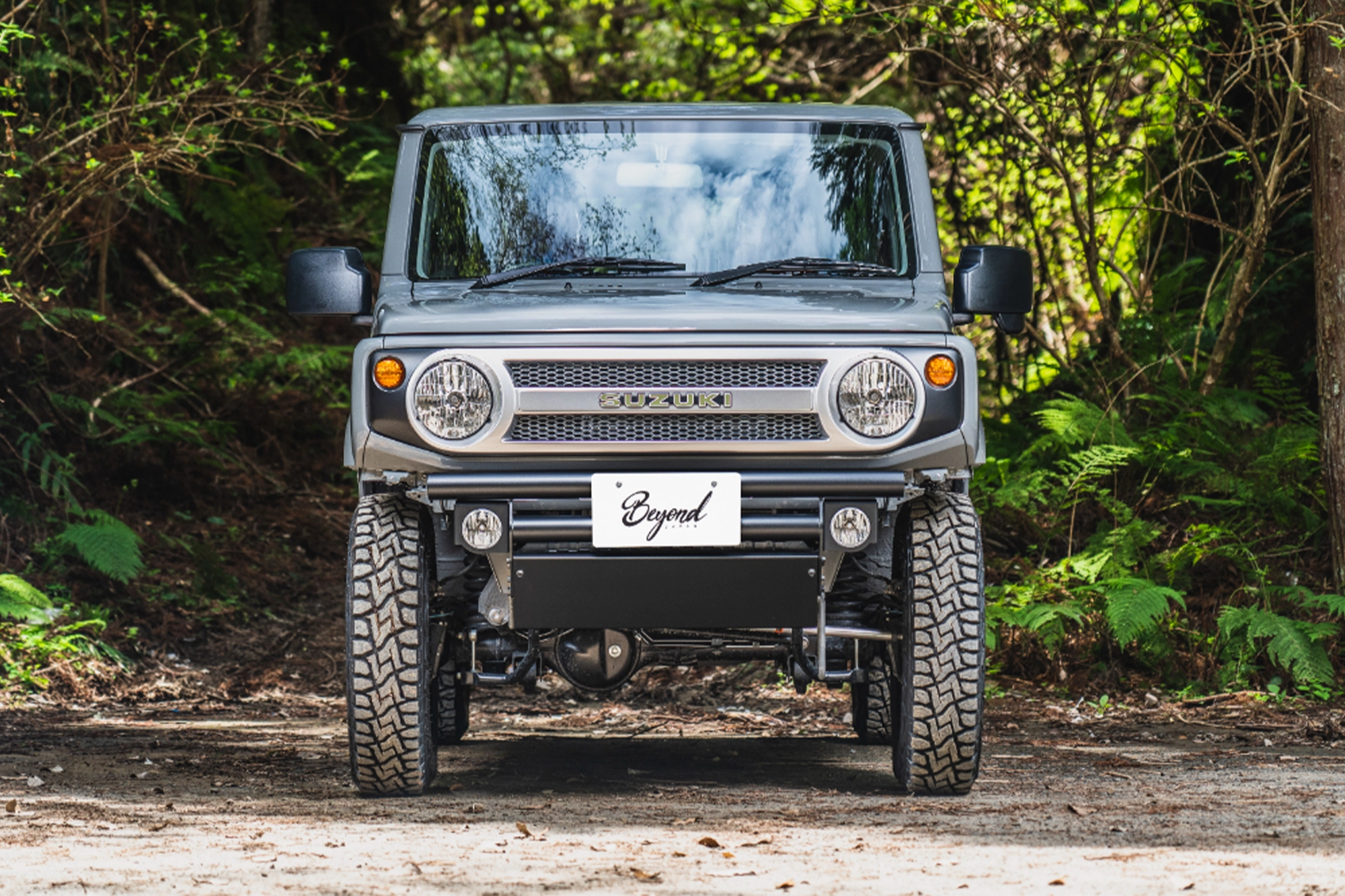 ビヨンドジャパンのジムニー用フロント&リアバンパーは、ブラックと鏡面の2種類を設定。