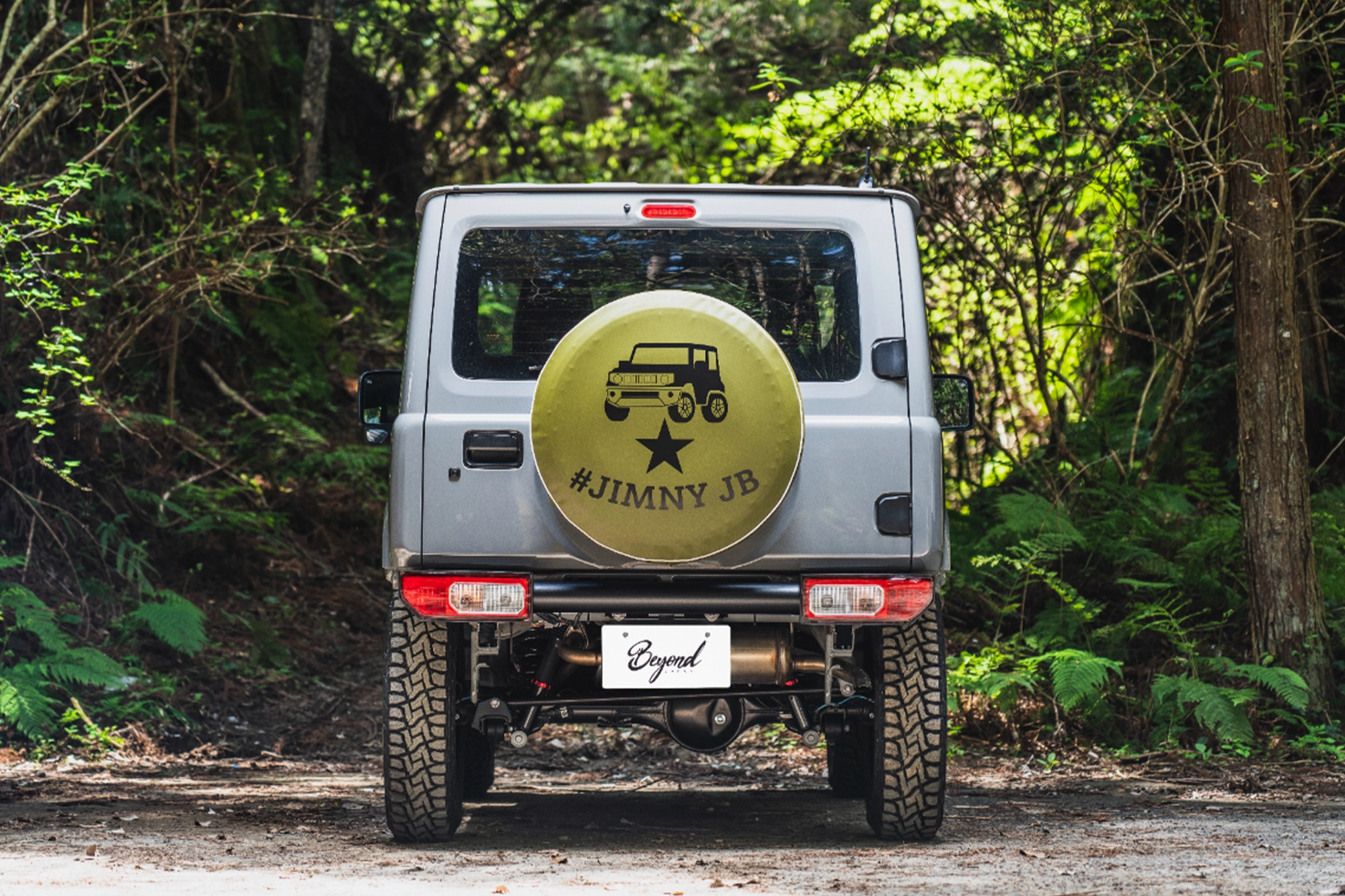 そしてジムニーのイラストが描かれたスペアタイヤカバーもオススメ。ミリタリー感あふれるカーキ色で目立ち度満点。
