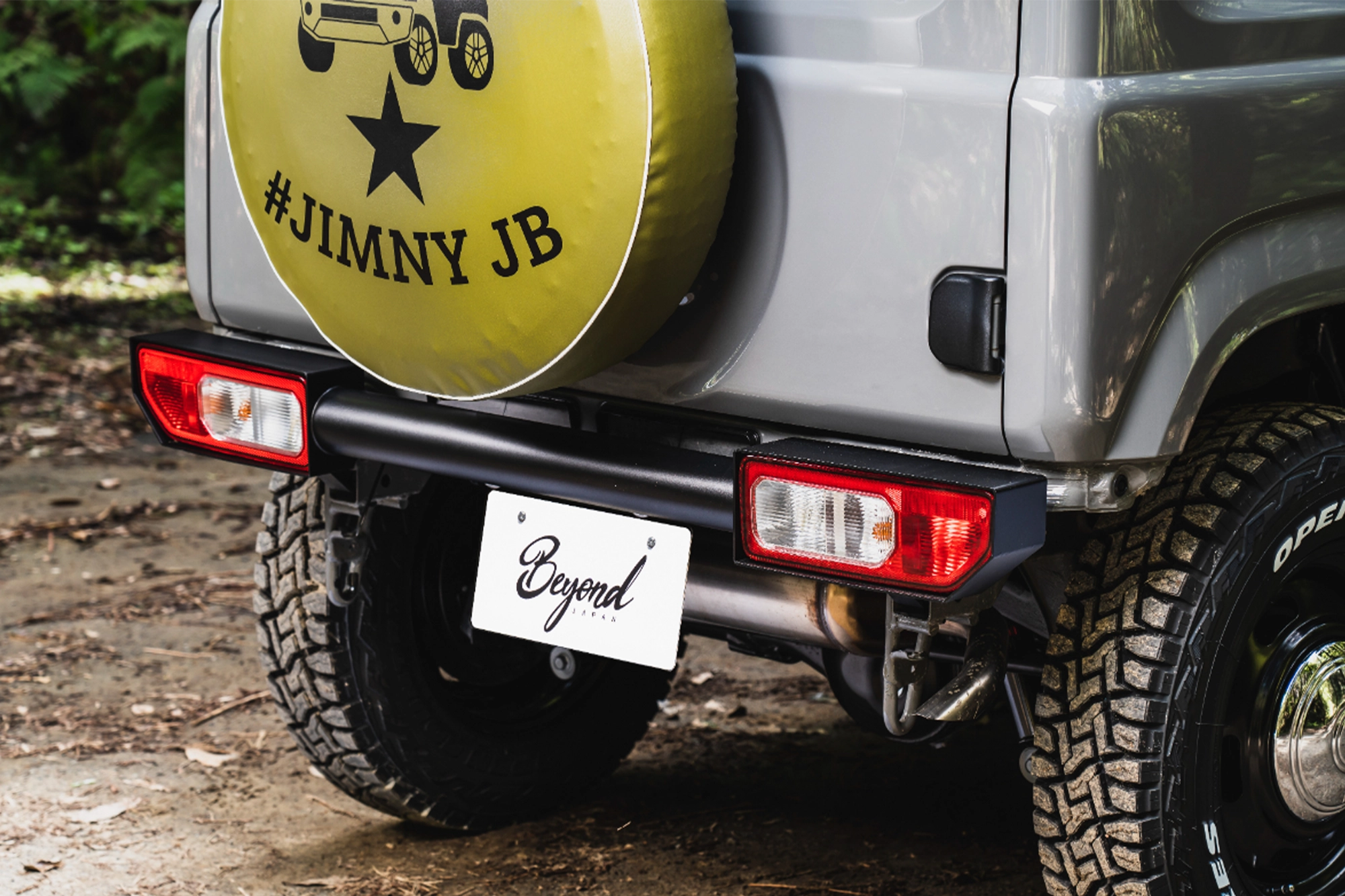 ビヨンドジャパンのジムニー用フロント&リアバンパーは、ブラックと鏡面の2種類を設定。
