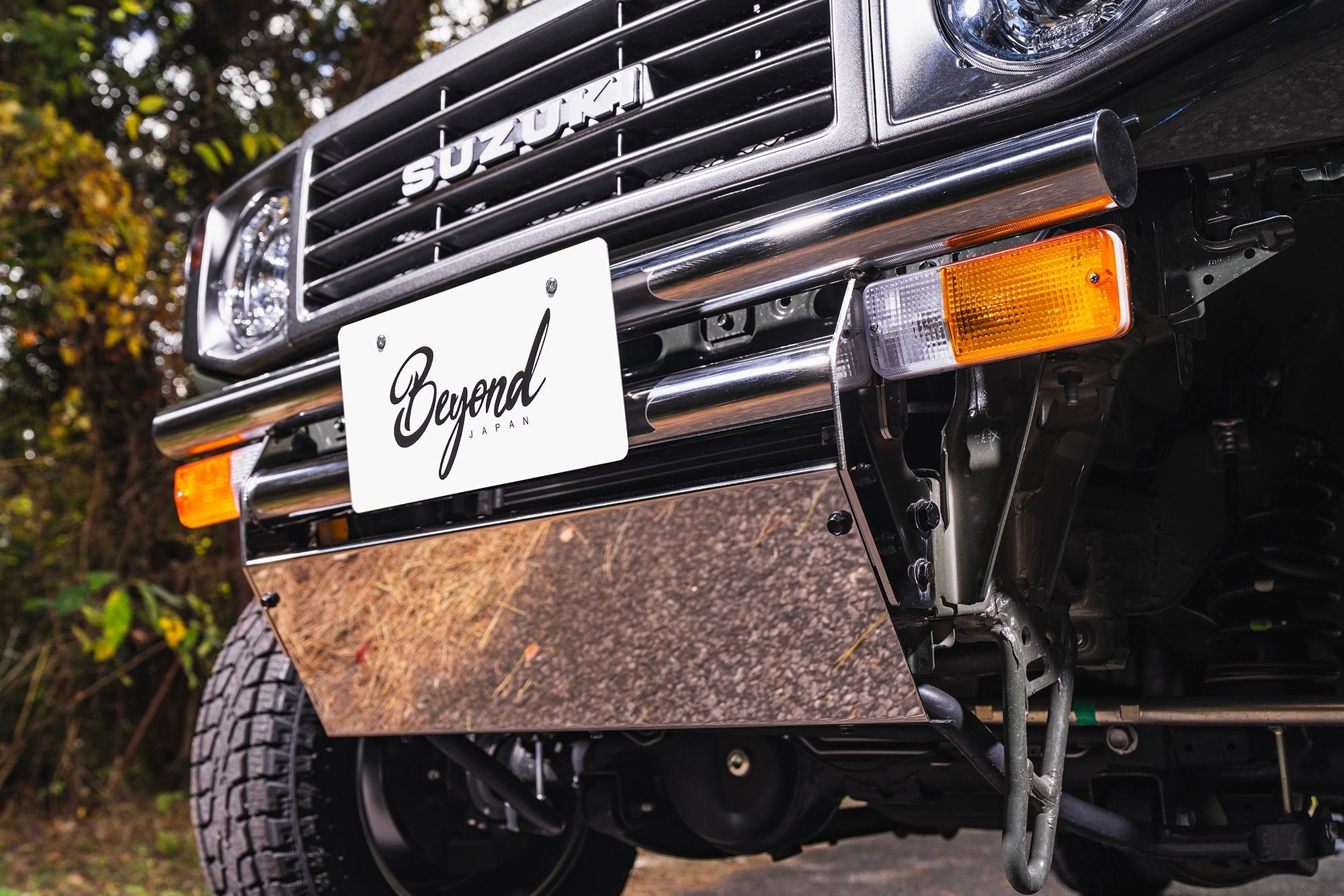 オフロード色を際立たせるパイプ形状のフロントバンパーは、ジムニーカスタムの代名詞。
