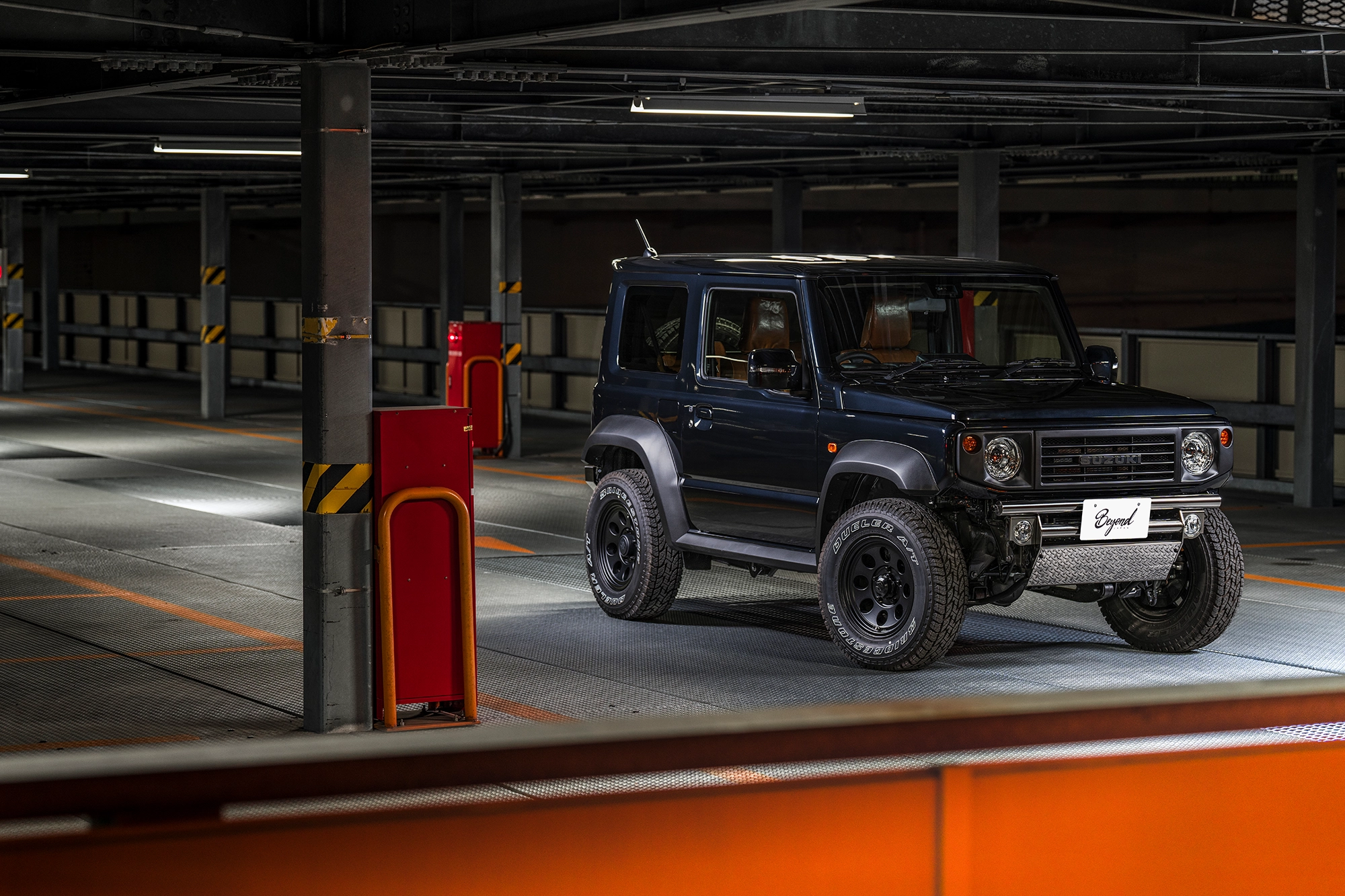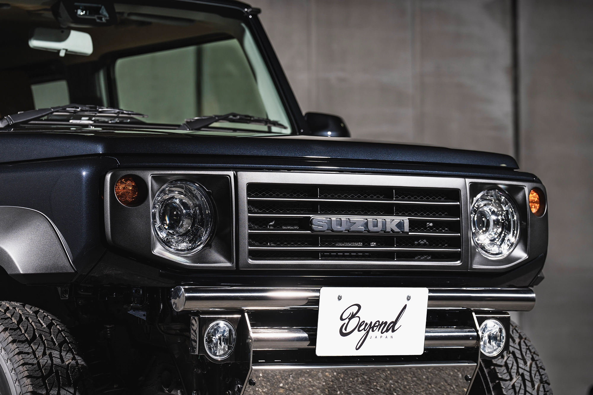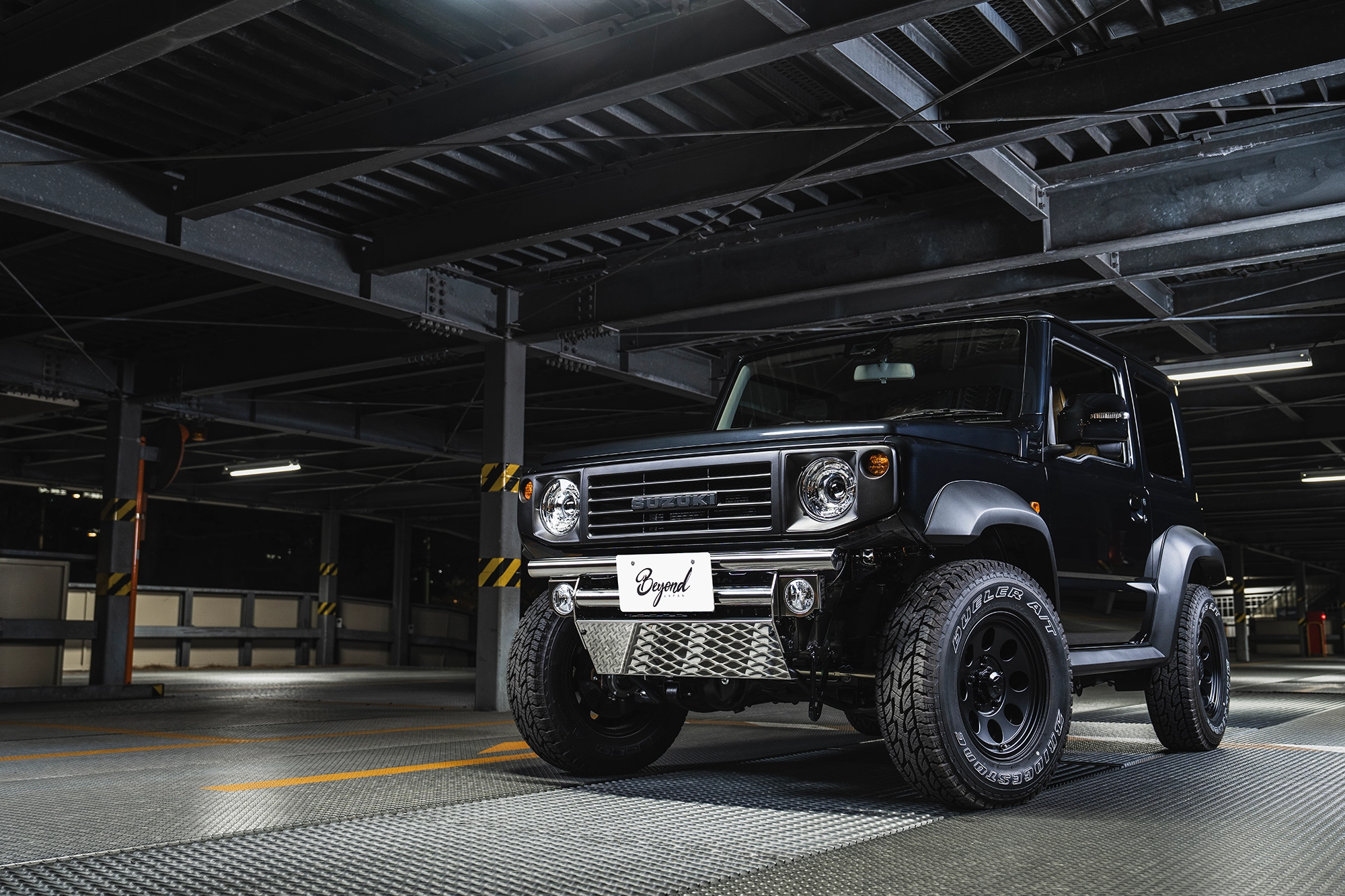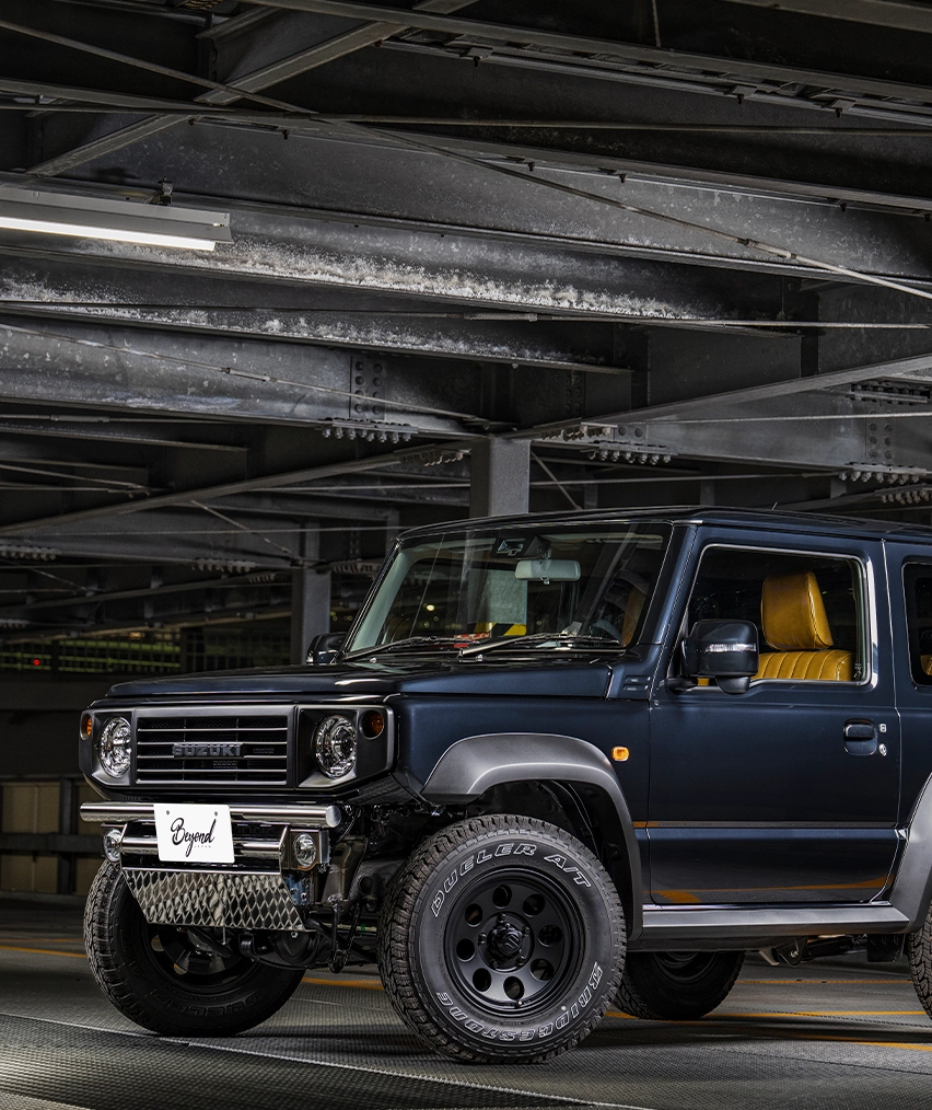 悪路走破性を高め、なおかつ視覚的に強靱さも増すビヨンドジャパンのフロント&リアバンパー。